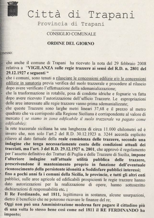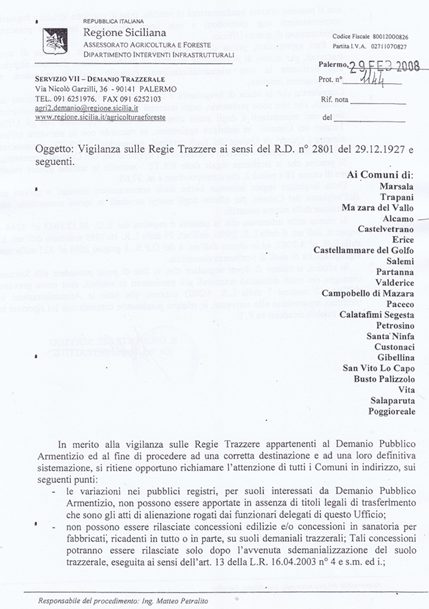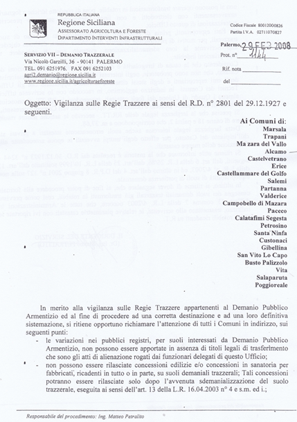 Prossimamente scriverò del recente “modus operandi” del Servizio Demanio Trazzerale. Un bravo “Servizio” che impartisce ordini a tutti i Comuni della Sicilia.