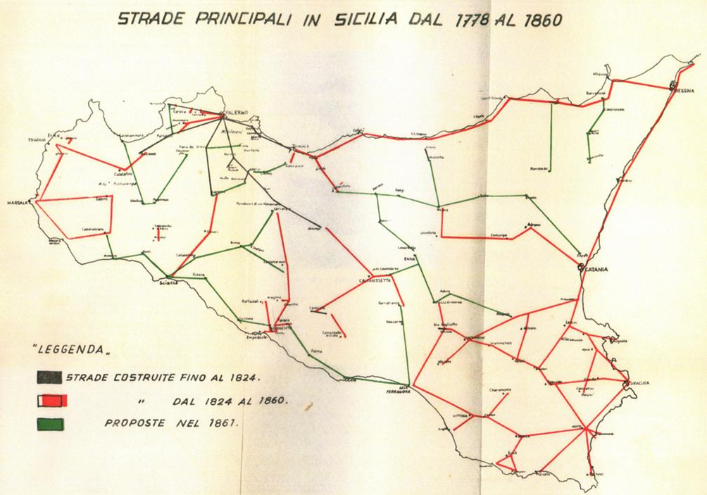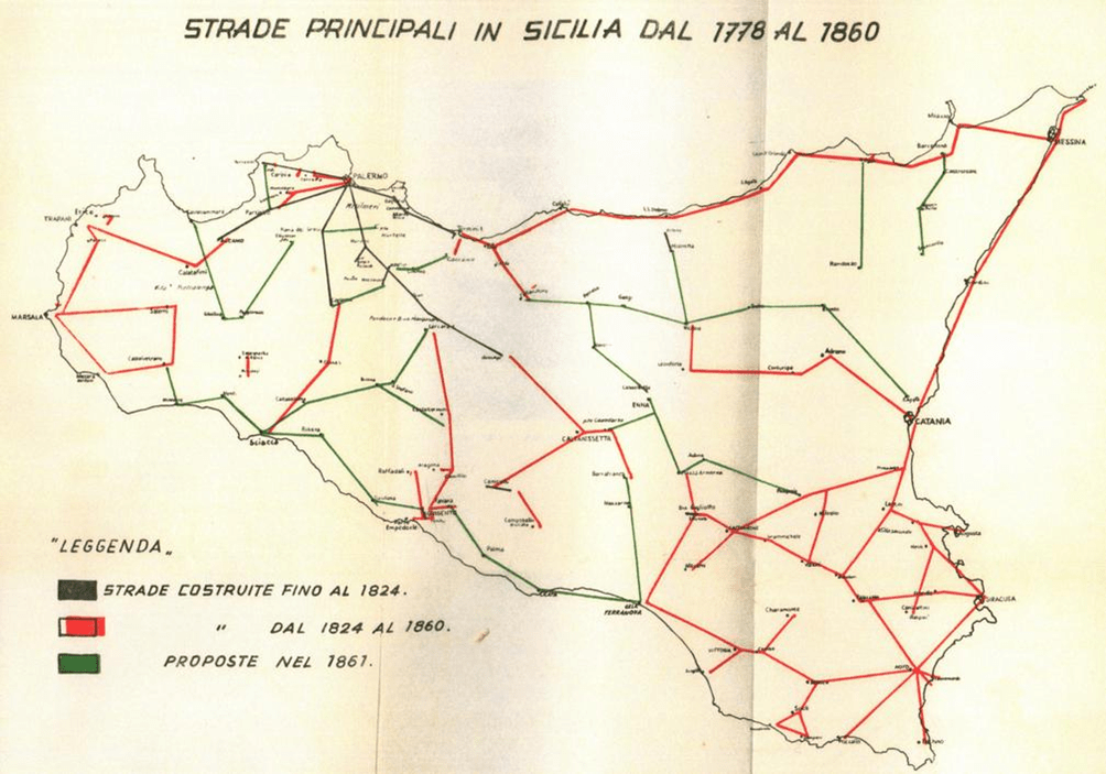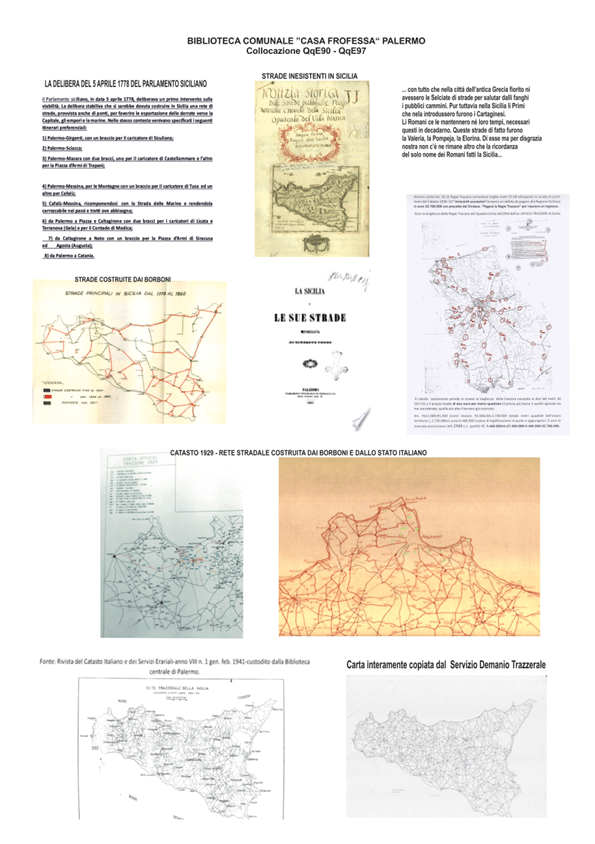 Infine con le carte sottostanti riporto un breve riassunto storico sulle vicende delle strade siciliane dalla delibera del 1778 del Parlamento siciliano fino al 1929 con la rete trazzerale completa del Catasto Italiano.