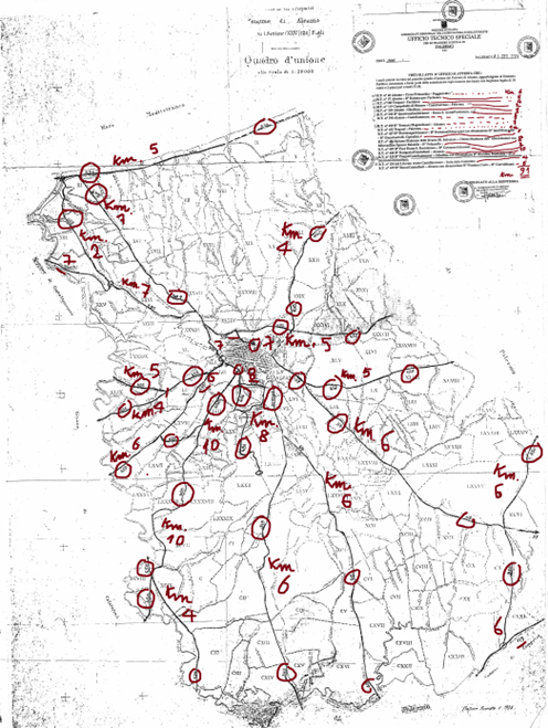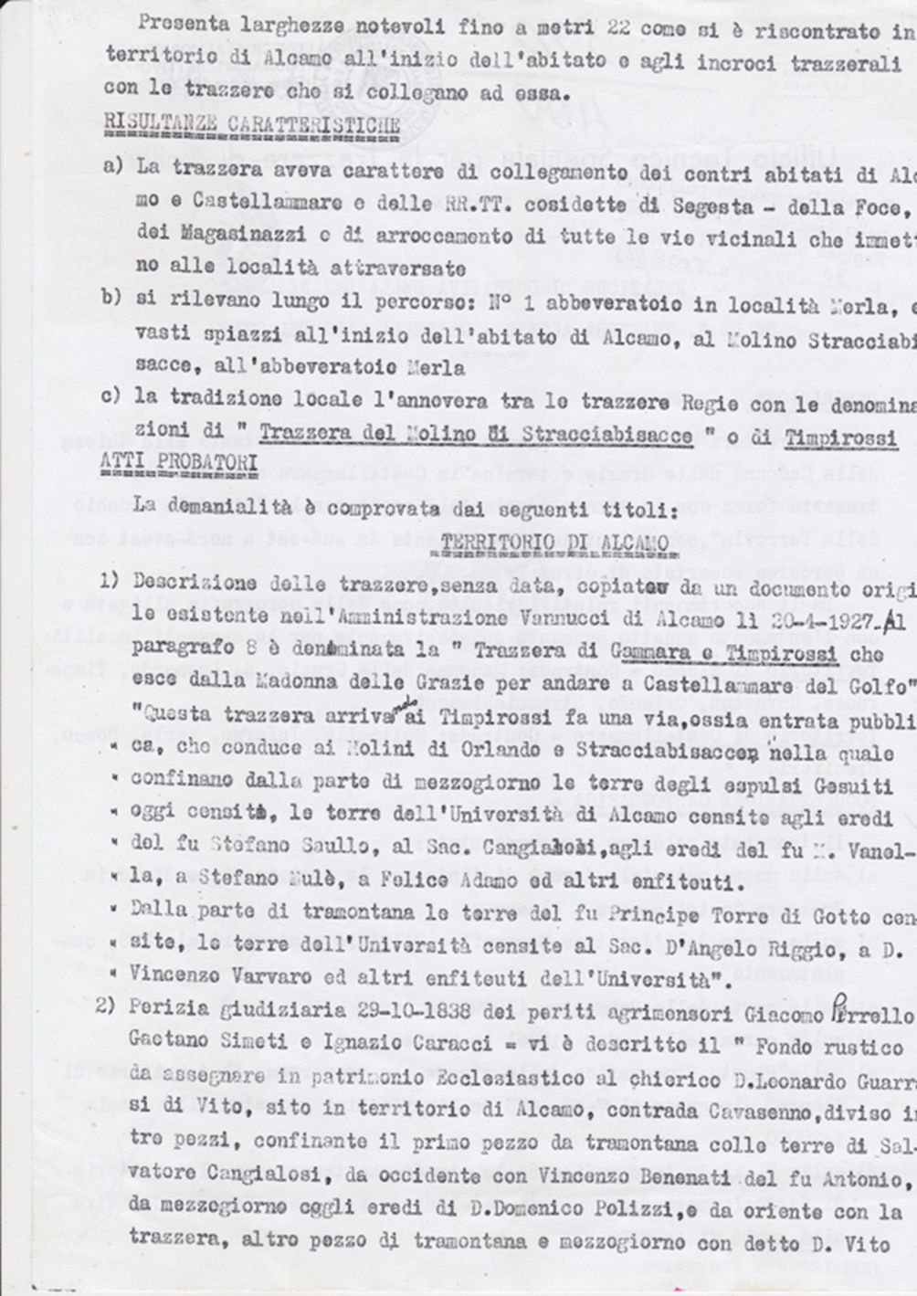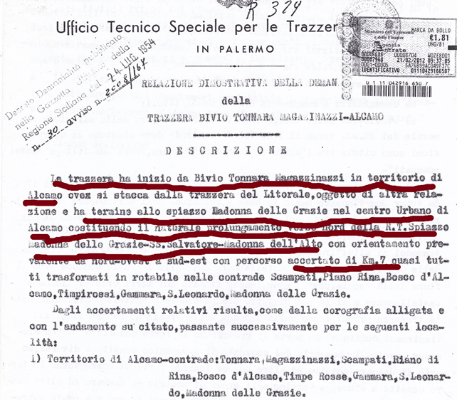 Bene! Solamente molto tempo dopo del Catasto del 1929 Alcamo, poteva essere interamente circoscritta da 15 strade armentizie larghe quasi metri 38.