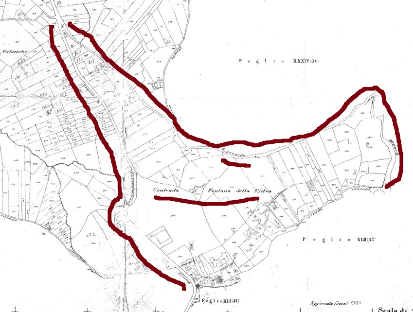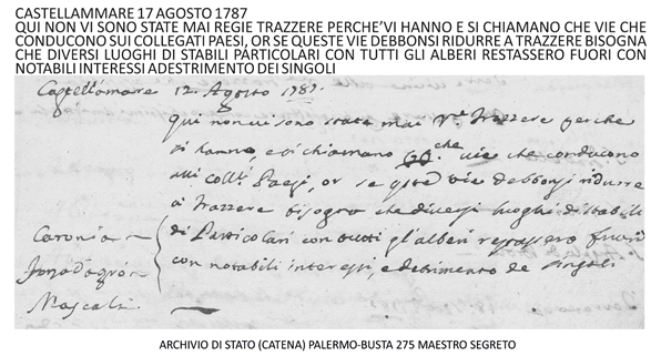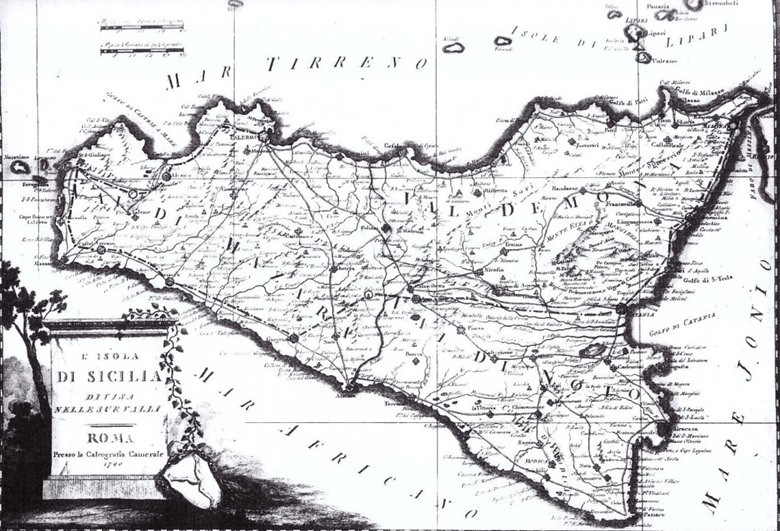 Ecco le strade ben visibili del 1790, il Catasto era solo un sogno come le 11500 chilometri di trazzere armentizie di oggi.