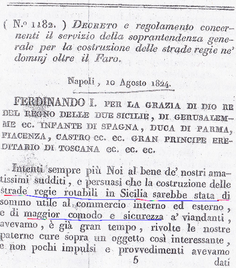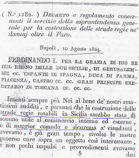 Resta abbastanza chiaro che fino al 1824 era Borbonica non esistevano strade. Aggiungo che gli spostamenti di merci e passeggeri avvenivano per cabotaggio (per via mare).