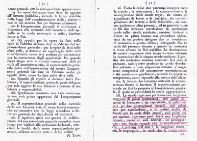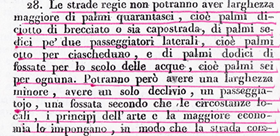 Le strade più importanti, quali le strade Regie ( sono tutte quelle strade delle città capoluoghi di Provincia dirette a Palermo capitale) dovevano essere larghe 46 palmi napoletani che corrispondono a circa 12,17 metri.